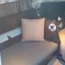 This boat is equipped with 1 bedroom, a kitchen with fridge, a TV, a seating area and 1 bathroom with a shower.