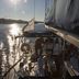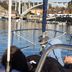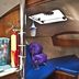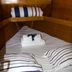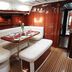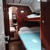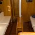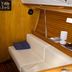 This boat features heating and sea views. It has an interior height of 1,53 m. Lateral berths are 70 to 90 cm width and the bow berth is triangular. Toilets and showers are at the dock since the boat does not feature a bathroom.