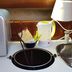 The kitchenette features a microwave, a fridge and a toaster, as well as kettle and coffee machine.