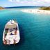 The boat includes 3 bedrooms, 1 bathroom with a shower, a seating area, and a kitchen with a microwave.