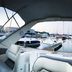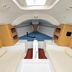 This boat has a cabin that features a living room and a fully equipped kitchenette with an oven and a fridge. The private bathroom features a shower.