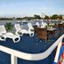 This boat comes with 2 bedrooms, a kitchenette with a fridge and a stovetop, a TV, a seating area and 1 bathroom with a shower.