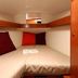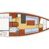 This boat has 1 cabin, a living area and a fully equipped kitchen with a fridge.