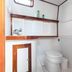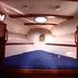 The boat includes 2 bedrooms, 1 bathroom with a shower, a seating area, and a kitchenette with a fridge.