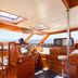 The boat has 3 bedrooms, a flat-screen TV, an equipped kitchen with a dishwasher and a microwave, a washing machine, and 1 bathroom with a shower.