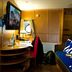 Each cabin comes with a desk, flat-screen TV and private bathroom with shower.