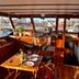 Upon arrival, guests enter the reception via a gangplank into a beautifully designed lobby with teak panelling and nautical décor. The TV lounge is found above the engine room, which can be viewed through the glass floors.