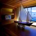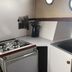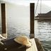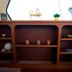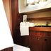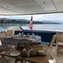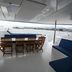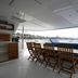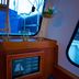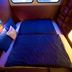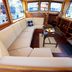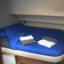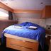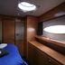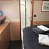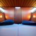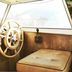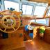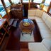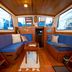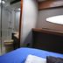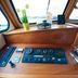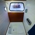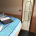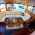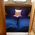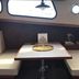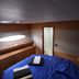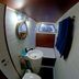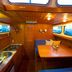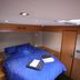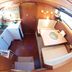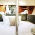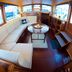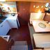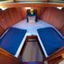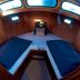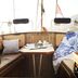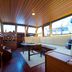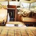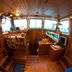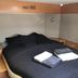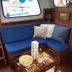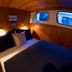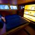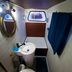 The boat consists of 1 separate bedroom, 1 bathroom, and a seating area.