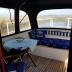 The boat comes with 1 sleeping cabin, a living room, a dining area and a well-appointed kitchenette with a fridge.