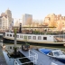 The boat is fitted with 1 bedroom, 1 bathroom, bed linen, towels, a flat-screen TV with cable channels, a dining area, a fully equipped kitchen, and a balcony with city views.